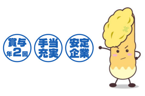 | 給与 | 時給1,250円 ・昇給あり ・業績に応じて賞与あり ・通勤手当あり 【月収例】 □家事と両立Aさん 1日7.5時間×月23日勤務=月収約215,000円 □家事と両立Bさん 1日7.5時間×月20日勤務=月収約187,500円 □学業と両立Cさん 1日4時間×週2日=月収50,000円 ※試用期間3ヶ月あり(同条件) |