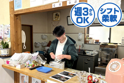 | 募集職種 | 温泉のフロント・清掃スタッフ |