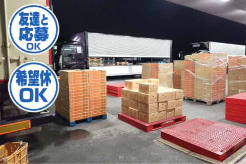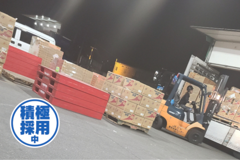 | 時間 | 20:00〜24:00又は25:00 ※市場作業はほぼ深夜1時までに は終わります。 配送物が少ない時は市場作業が 終われば終了! |