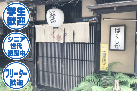 | 時間 | 16:00〜22:00の間で応相談 (金土は24:00迄) ※平日のみ・週末のみOK 短期も相談可 ※18時〜・19時〜・20時〜も相談可 ※シフトは相談OK(週1日〜、1日3h〜OK) |