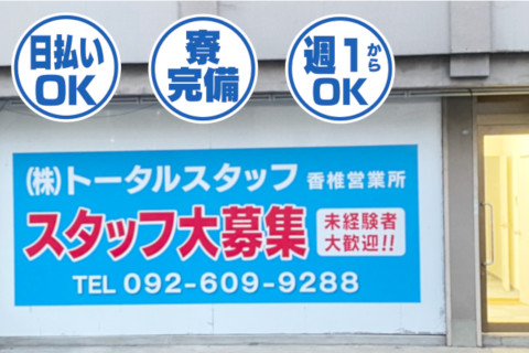 | 給与 | ①日給21,500円+交通費(当社規定) ※試用期間1ヵ月は日給20,000円 月収24万円以上も可能 ②日給12,000円 ※試用期間1ヶ月は日給11,000円 ③日給12,600円 ※試用期間1ヶ月は日給11,550円 |