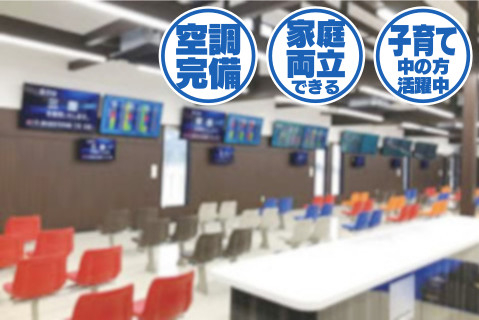 | 時間 | ①8:30〜16:45 ②13:00〜21:15 ※①②どちらの勤務も有 ※シフト表により月20〜22日程度の勤務 (土日祝の勤務有) |
