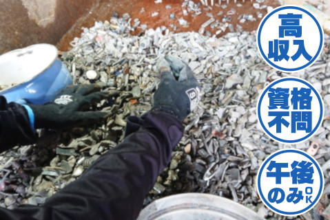 時間 | 13:00〜17:00 週4日以上勤務出来る方 ※出勤日数、出勤時間帯はご相談下さい (例)1日勤務イメージ 13:00 出社|作業スタート(準備や朝礼) ↓ 13:15〜16:30|金属の仕分け作業 ↓ 16:30〜17:00|次の日の準備・片付け ↓ 17:00 退社|お疲れ様でした! |