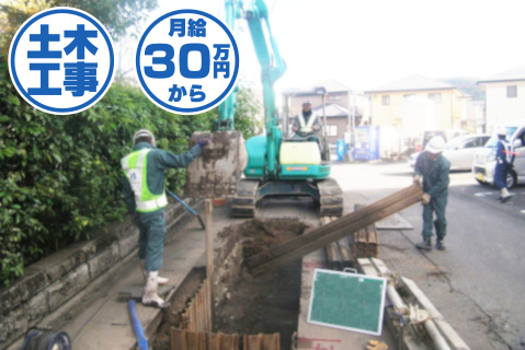 | 募集職種 | 公共工事等の土木工事作業【月給30万円スタート♪】 |
