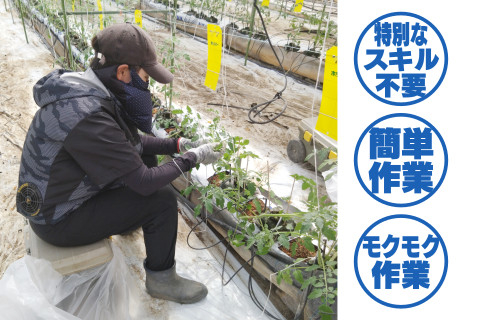 | 募集職種 | トマト・きゅうりの収穫スタッフ |