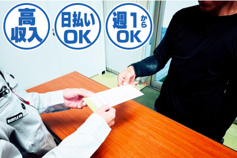 | 給与 | 日給10,000円〜13,000円 ※入社後1ヶ月間は給与UPキャンペーン に付き、日給プラス1,000円を含む ※完全日払い(会社規定による) ※研修期間(2週間)同条件 ※キャンペーン終了後は日給9,000円〜 ■当日現金手渡しで、 働いた分すぐに給与が貰えるのも 嬉しいポイントです!! |