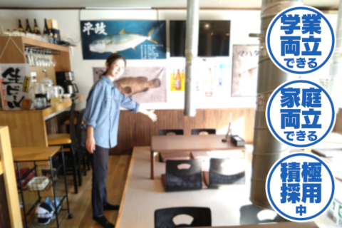 | 時間 | 16:00または17:00〜21:00 ※月30〜40時間程度で時間・曜日 相談応じます ※土日祝のみ勤務もOK |