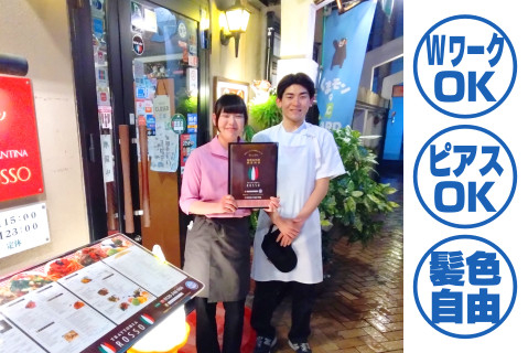 イタリアン料理店のホールスタッフ未経験さん大歓迎♪週1日からでOK/学校・家庭との両立可能/星3つの食事付きです!