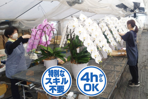| 仕事内容 | 胡蝶蘭の仕立ておよび出荷準備を |