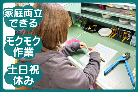 電線加工・室内軽作業スタッフ◆業務拡大に付募集!! 快適室内で座ってのお仕事です◎土日祝休み♪
